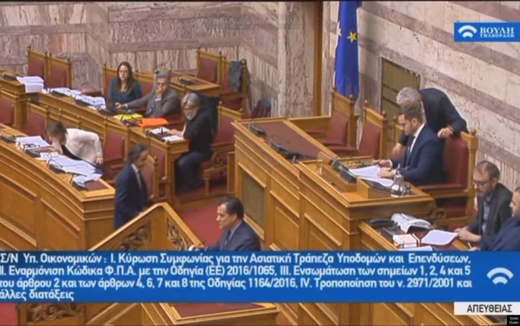 Ο Άδωνις Γεωργιάδης επί προσωπικού προς Πάνο Καμμένο στη Βουλή των Ελλήνων 11/12/2018