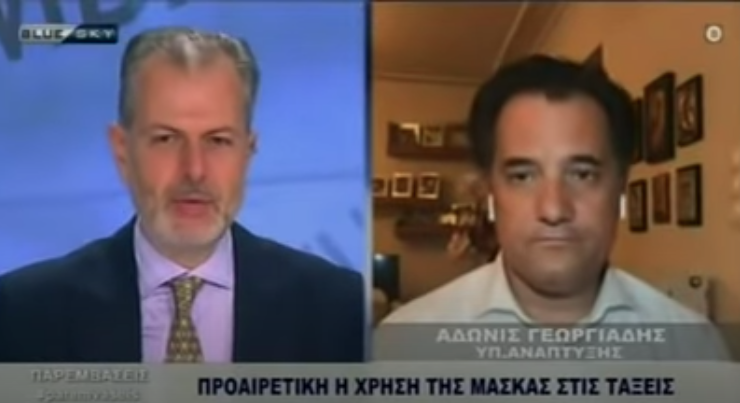 Ο Άδωνις Γεωργιάδης στον Γιάννη Παπαδόπουλο στο Blue Sky 29/04/2020
