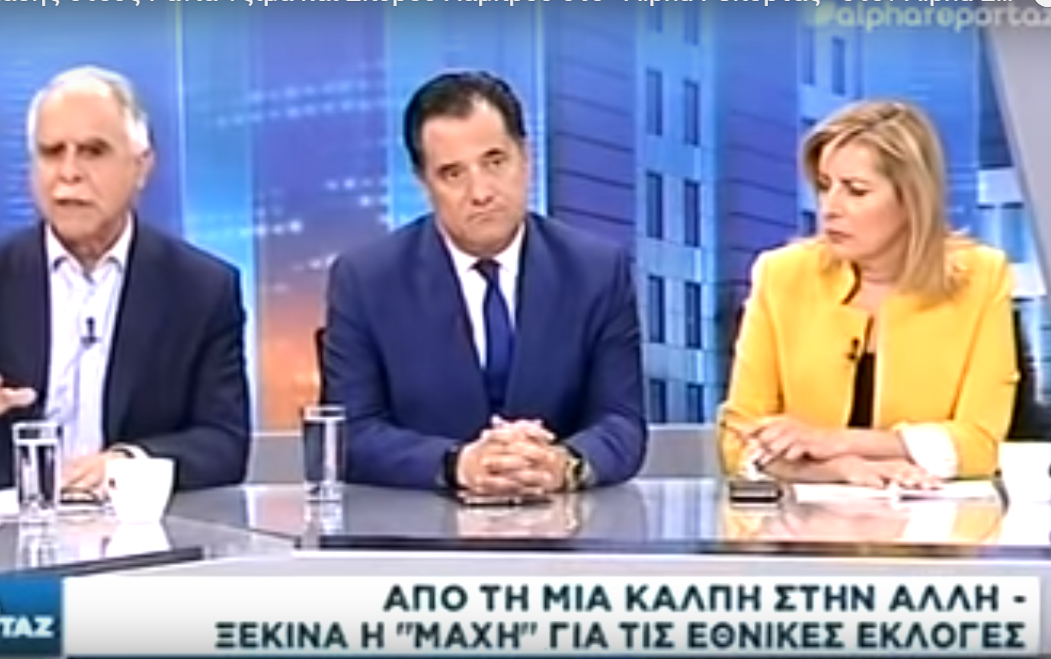 Ο Άδωνις Γεωργιάδης στους Ράνια Τζίμα και Σπύρου Λάμπρου στο «Alpha Ρεπορτάζ» στον Alpha 28/05/2019